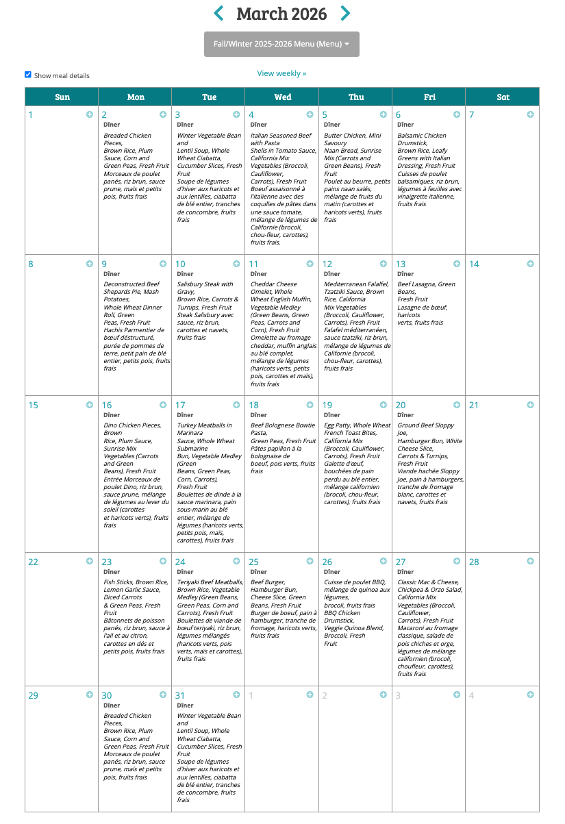 Les parents peuvent toujours consulter les menus les plus récents sur le portail Lillio afin de savoir ce qui est prévu chaque semaine.